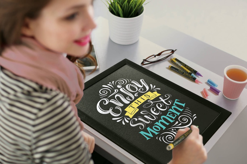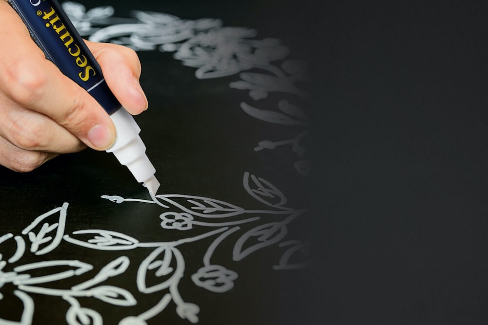 黒板、ガラス、金属、プラスチック、その他無孔質な表面に適しています。