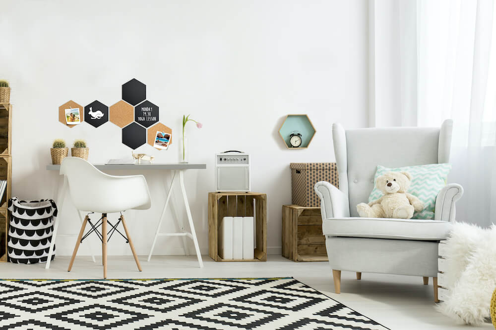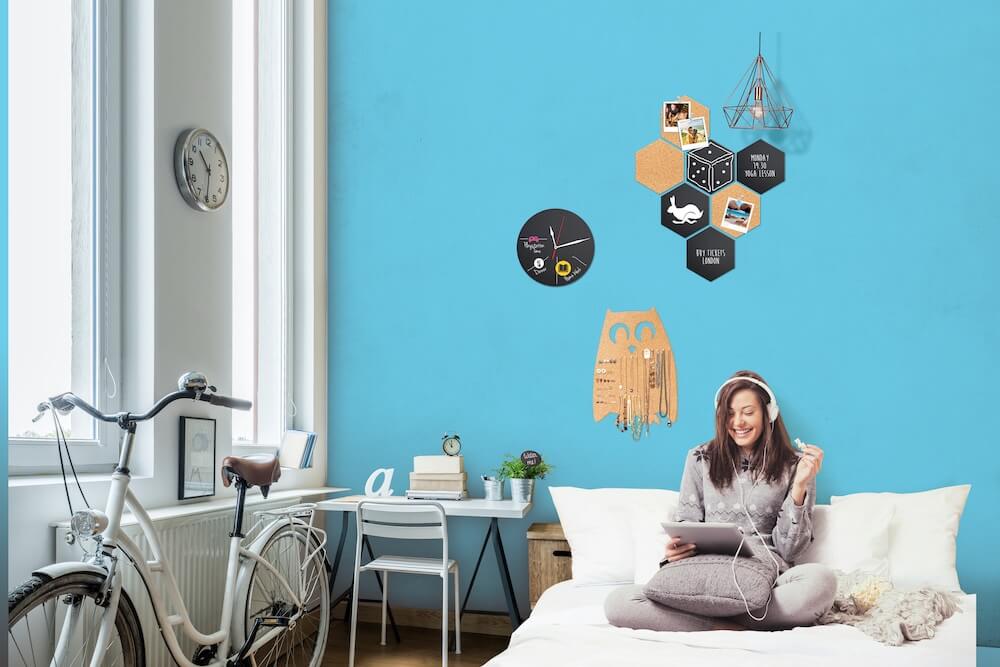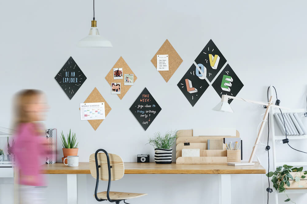 大きな書き込み面の黒板は、お手入れが簡単で、お好みのデザインに取り付けられます。